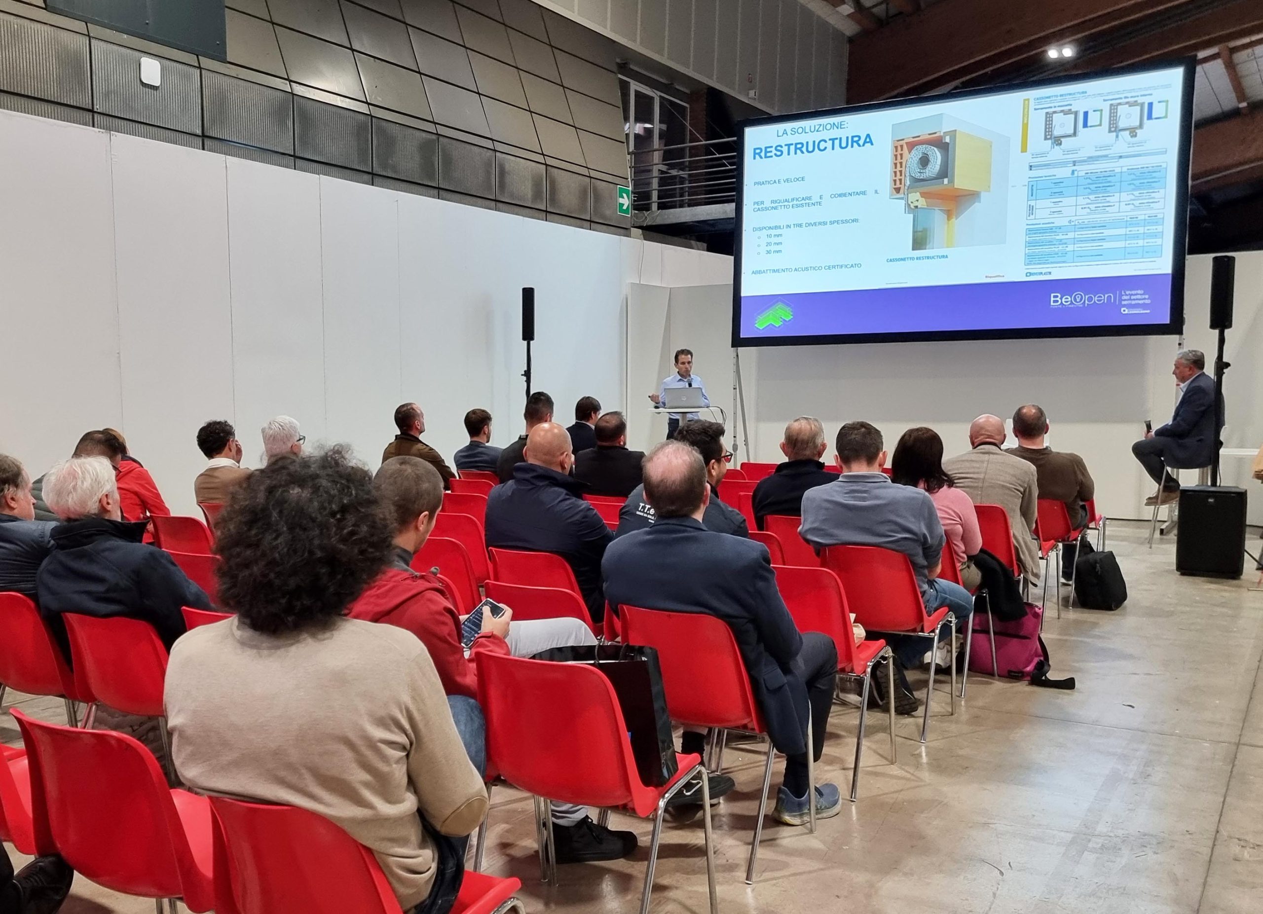 Rilevante anche l’intervento sul palco in materia di termoacustica del cassonetto dell’ing. Zenatti durante il dibattito sulle performance acustiche del serramento diretto dall’Ingegner D’Albo Direttore del Laboratorio Tecnologico LegnoLegno.
