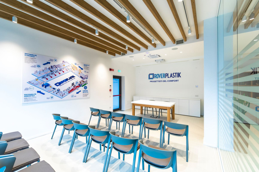 L’immagine è diventata parte integrante della comunicazione aziendale: è stata stampata su differenti supporti come la brochure aziendale e su quadri in grande formato affissi nelle sale riunioni degli uffici e del Lab Roverplastik.