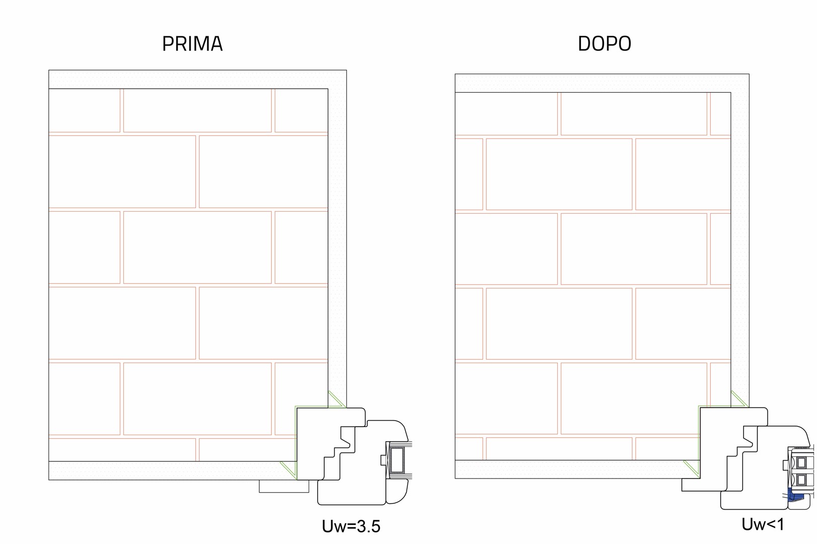 Con questa soluzione è possibile quindi sostituire il vecchio serramento montato su un telaio da 55mm ottenendo migliori prestazioni e risultato estetico ottimale restando in linea con la progettazione iniziale dell’edificio.