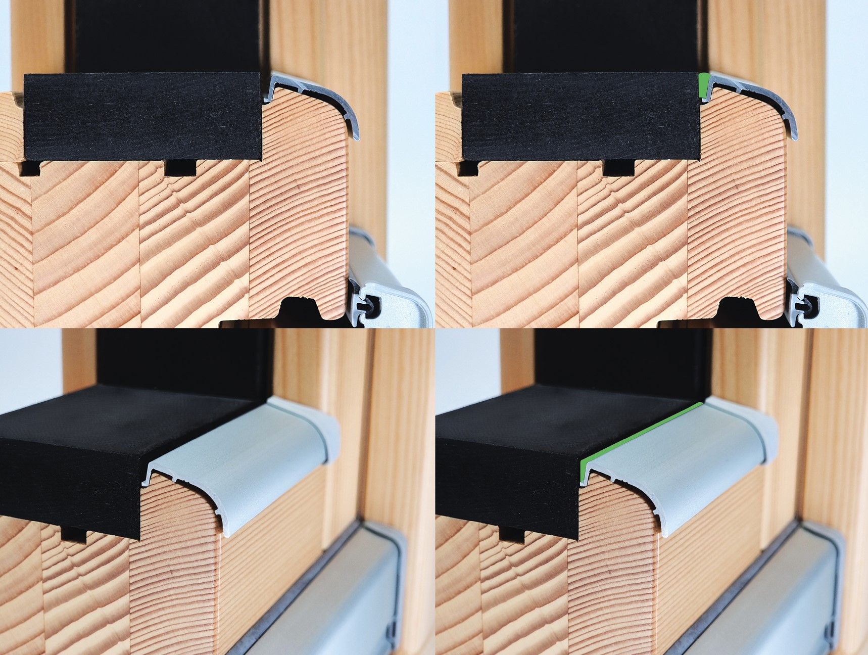 Prima dell’installazione, assicurarsi che la superficie del legno sia pulita e asciutta. Una volta posizionato il profilo, stendere un cordolo di silicone Windosil (disponibile da aprile) sulla superficie del gocciolatoio e premerlo contro il traverso inferiore dell’anta. È consigliato l’utilizzo di Windosil, in quanto è un silicone neutro di alta qualità studiato appositamente per il sistema vetro, resistente alle intemperie e ai raggi UV.