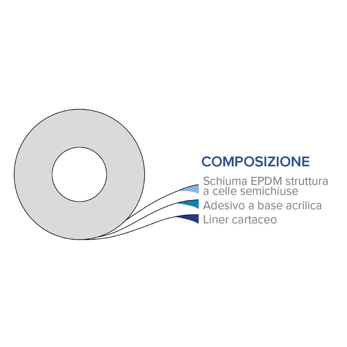 ROVERSEAL FAST è il nastro in schiuma EPDM a celle semichiuse, adesivo su un lato, specificatamente studiato per la sigillatura del traverso inferiore dei serramenti.